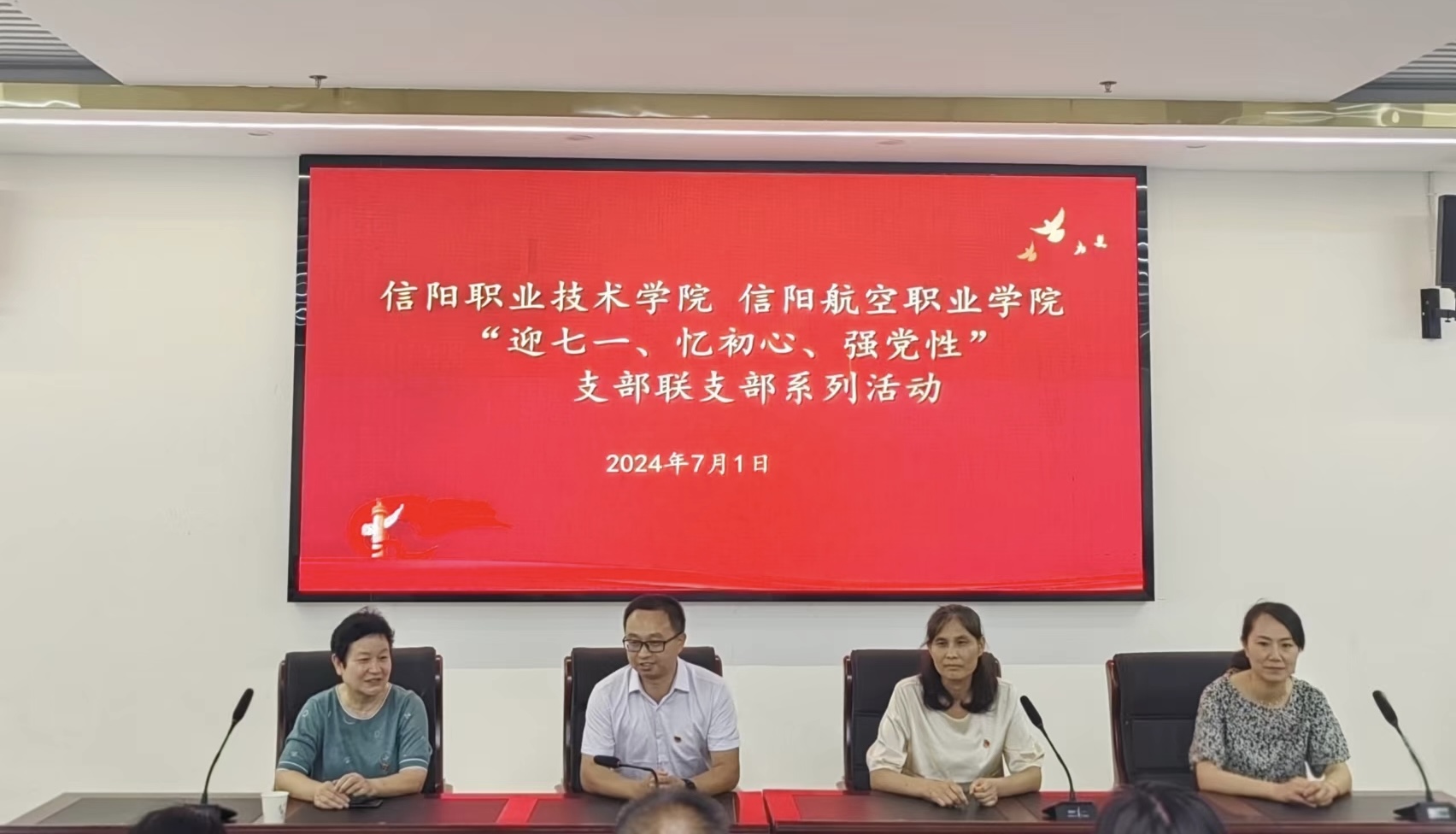 为庆祝中国共产党成立103周年,教育广大党员干部牢记党的宗旨,提高党组织的凝聚力、战斗力,7月1日上午,药公司党总支书记陈才、经理吴长忠带领党员干部代表赴信阳航空职业学院马克思主义学院交流学习,举行“庆七一”红色教育活动。