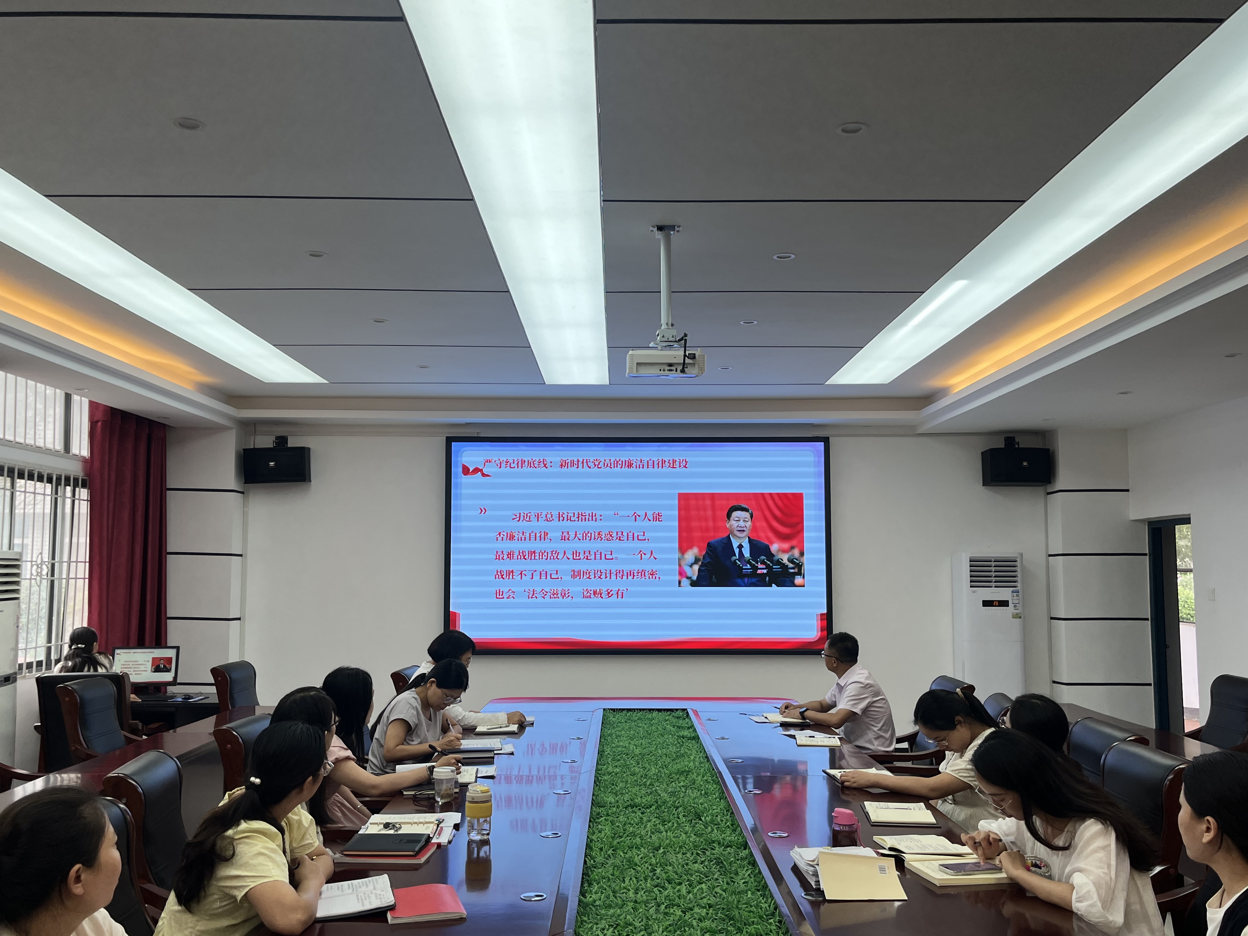 张婉晴同志围绕深入贯彻中央八项规定精神,系统阐释党的廉洁纪律的主旨要义和实践要求。通过坚持高线、守住底线;廉洁用权、克己奉公;尚俭戒奢、艰苦奋斗;正心修身、涵养文化四个方面,辅以焦裕禄、陈毅元帅的诗《七古手莫伸》等中国共产党党员的清廉自律等典型故事,为全体党员讲授了一堂生动深刻的党课。