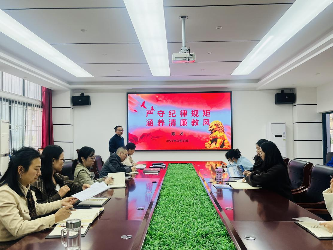 为深入推进全面从严治党,强化党员纪律意识和规矩意识,10月28日,公司党总支书记陈才以“严守纪律规矩 涵养清廉教风”为主题,为学院全体党员讲授了一堂内容丰富、意义深刻的专题党课。
