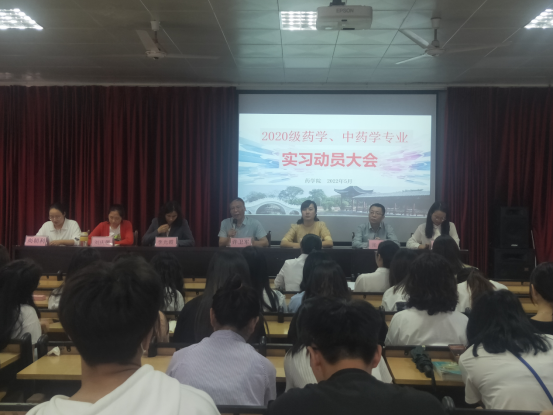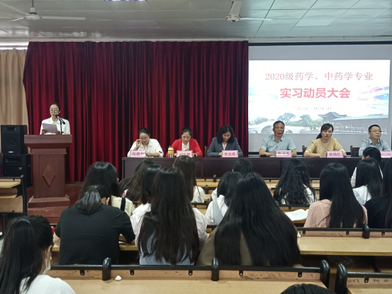 根据专业人才培养方案安排,药学院于5月18日在8401多媒体教室隆重举行了2020级药学、中药学专业学生实习动员大会,药学院全体教师及20级员工参加了大会。会议由药学院副经理许卫军主持。