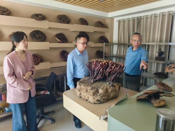 为深化校企合作,推动大别山道地药材产业与现代农业技术的融合发展,4月14日,药公司党总支书记陈才,副经理兼研究院负责人许卫军等4人,会同研究院理事长王晓田,特约研究员河南中医药大学郭涛教授及其研究团队,前往河南硕沃农业科技有限公司和洛阳灵芝文化产业园(洛阳竹荟生物科技有限公司),考察天麻种植及菌类培养技术。