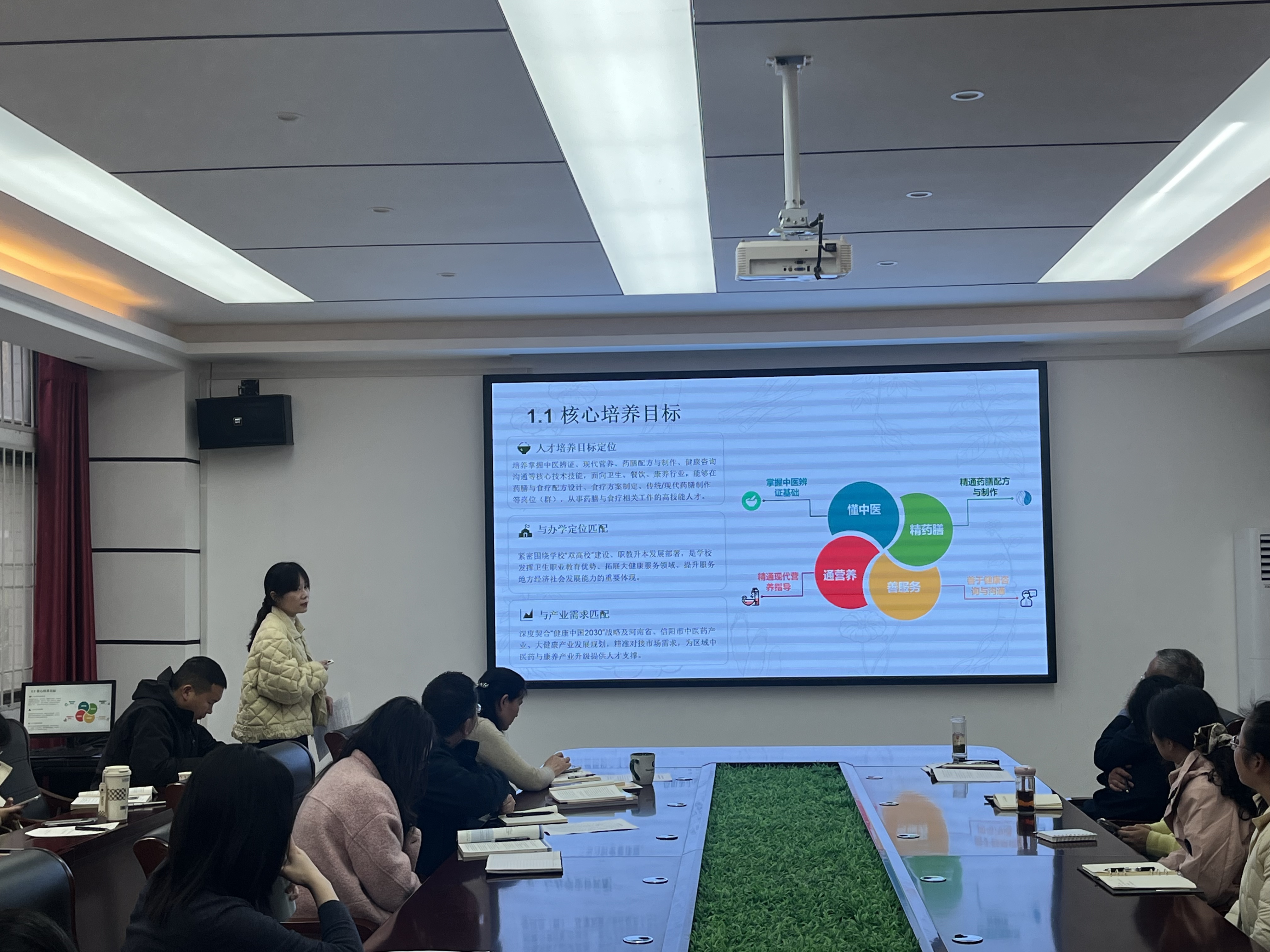 活动中,药学、中医学、药膳与食疗、中药学等4位专业负责人分别围绕专业定位与岗位对接、人才培养方案设计、团队队伍建设、实习实训与校企合作、质量监控与持续改进五个方面进行系统汇报,全面梳理专业建设现状、特色优势与发展路径。各课程负责人则聚焦“目标—内容—实施—评价”主线,深入展示课程建设成效与改革探索。汇报结束后,与会领导逐一进行点评,并就当前专业建设与课程建设中存在的问题提出针对性改进建议。