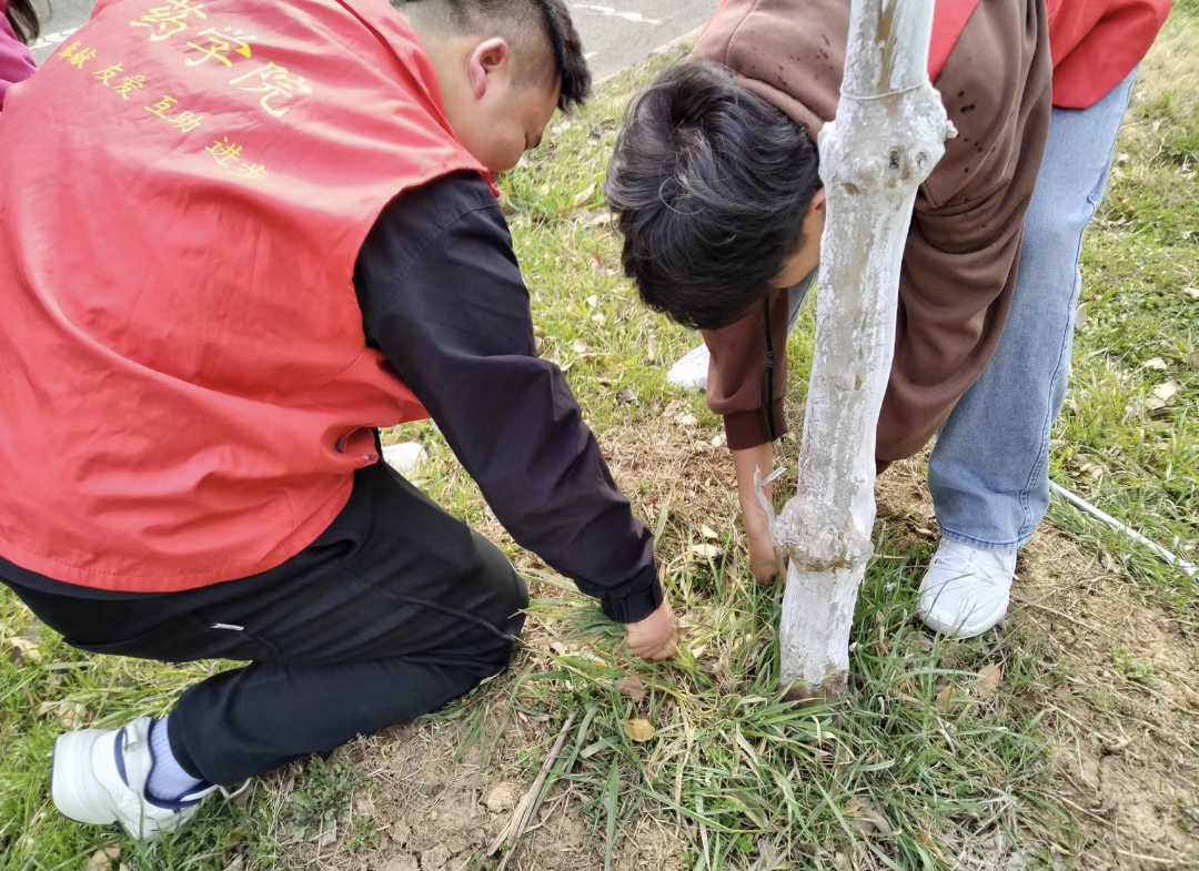 为增强同学们爱绿、护绿的意识,3月12日,药学院开展了“义务除草,美公司园”植树节志愿活动,现场气氛热烈而有序。同学们纷纷拿起工具,投入到紧张的劳动中。或两人一组,或三五成群,互相协作,共同清除杂草、浇水灌溉树木,每一步都做得认真细致,充满热情。