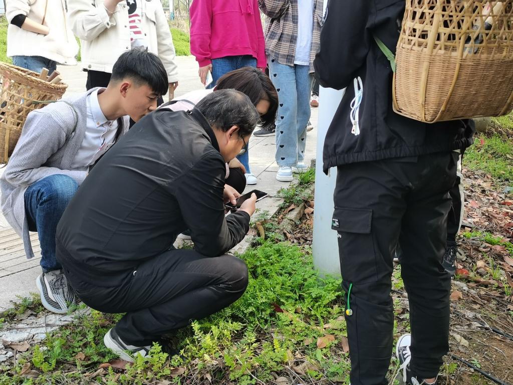 本草社成员沿着校园外围的道路,利用“形色”APP和“花伴侣”等学习软件,识别各种花草种类,并学习植物的药用价值。活动结束时,同学们辨识了茜草、狭叶十大功劳、米口袋、毛茛、野胡萝卜、蛇床、茵陈、罗汉松等几十种植物。在识别植物的同时,员工们也采集一些用于制作标本的植物,采集过程中注意保护其他植物和土壤复原,整个活动激发同学们的极大学习兴趣,实现了理论运用于实践的教学初衷。