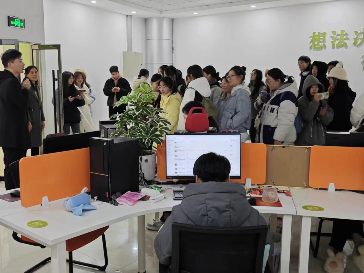 校就业创业指导办公室涂延文老师带领同学们参观了基地,介绍了基地的发展历程和目前入驻的创新创业项目。在指导老师的讲解下,同学们学习到了优秀项目的创新思路,并详细了解了项目落地、运行经营、创业政策等方面的内容。