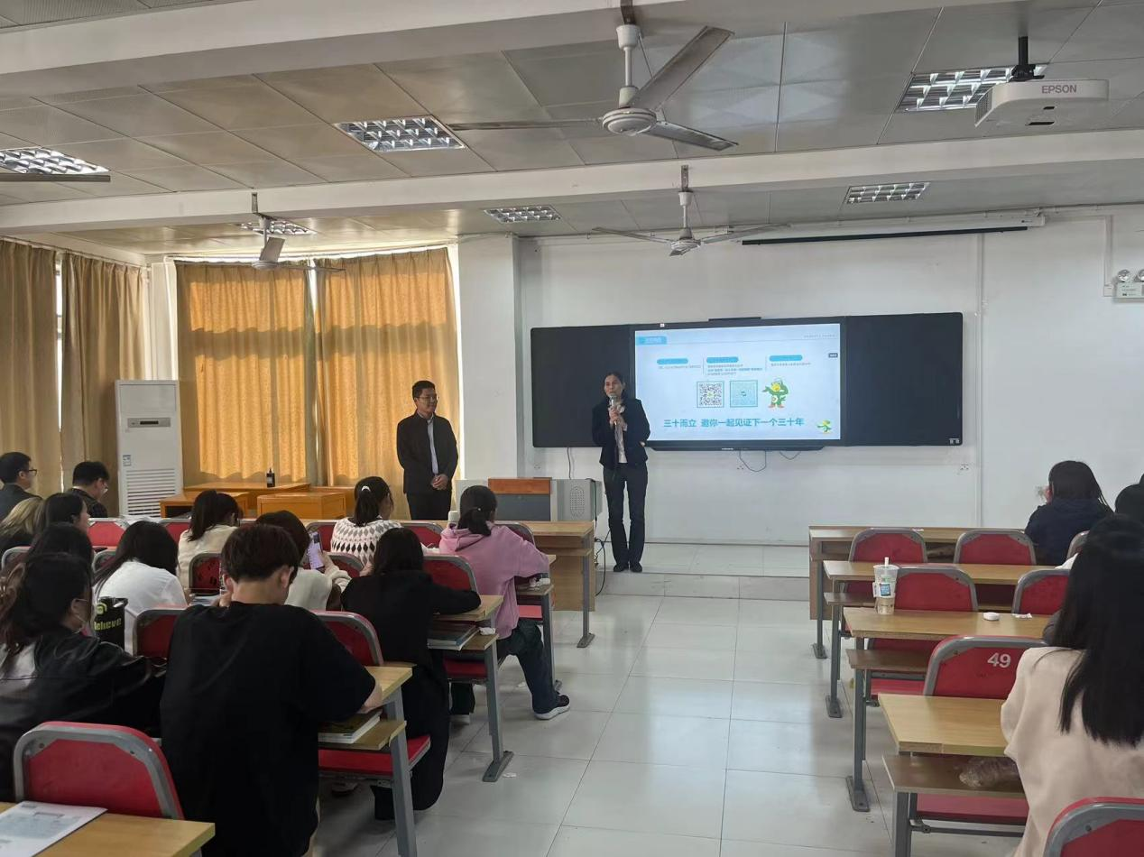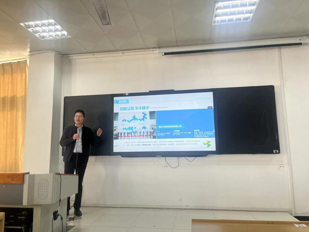 公司河南省片区经理闫磊向在场的学子们展示了公司在医药行业的地位以及未来的发展规划。他详细介绍了公司的研发实力、产品线以及市场布局,让药学院的同学们对华邦制药有了更加全面的认识;他分享了自己在公司的工作经历,特别是在新药研发、临床试验以及市场推广等方面的经验和心得。随后,他从职业生涯规划、成长路径对同学们进行了培训,鼓励药学院的同学们要扎实专业知识,勇于创新实践,为医药事业贡献自己的力量。